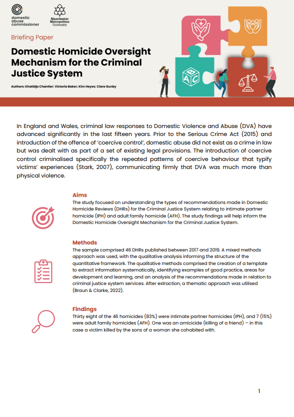 Domestic Homicide Oversight Mechanism: HALT study criminal justice briefing