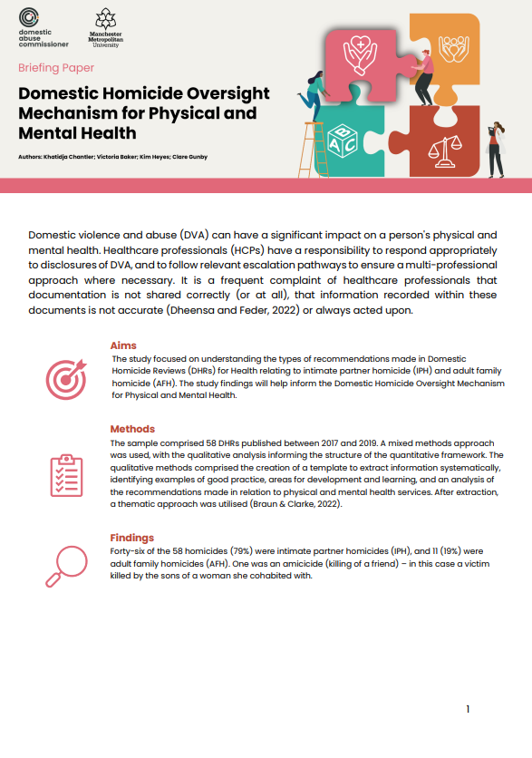 Domestic Homicide Oversight Mechanism: HALT study physical and mental health services briefing