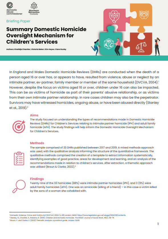 Domestic Homicide Oversight Mechanism: HALT study children’s services briefing