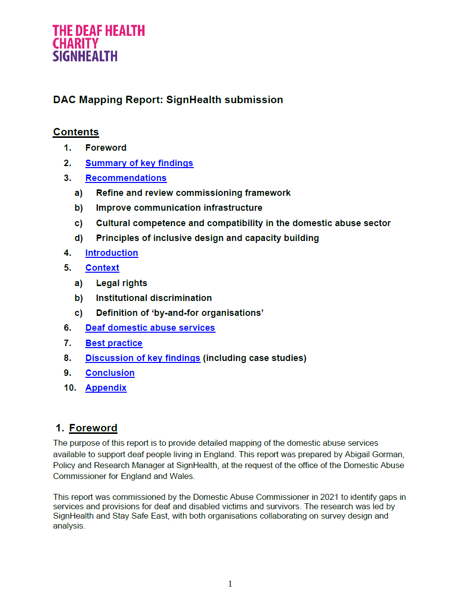 Mapping domestic abuse services available to support deaf people living in England
